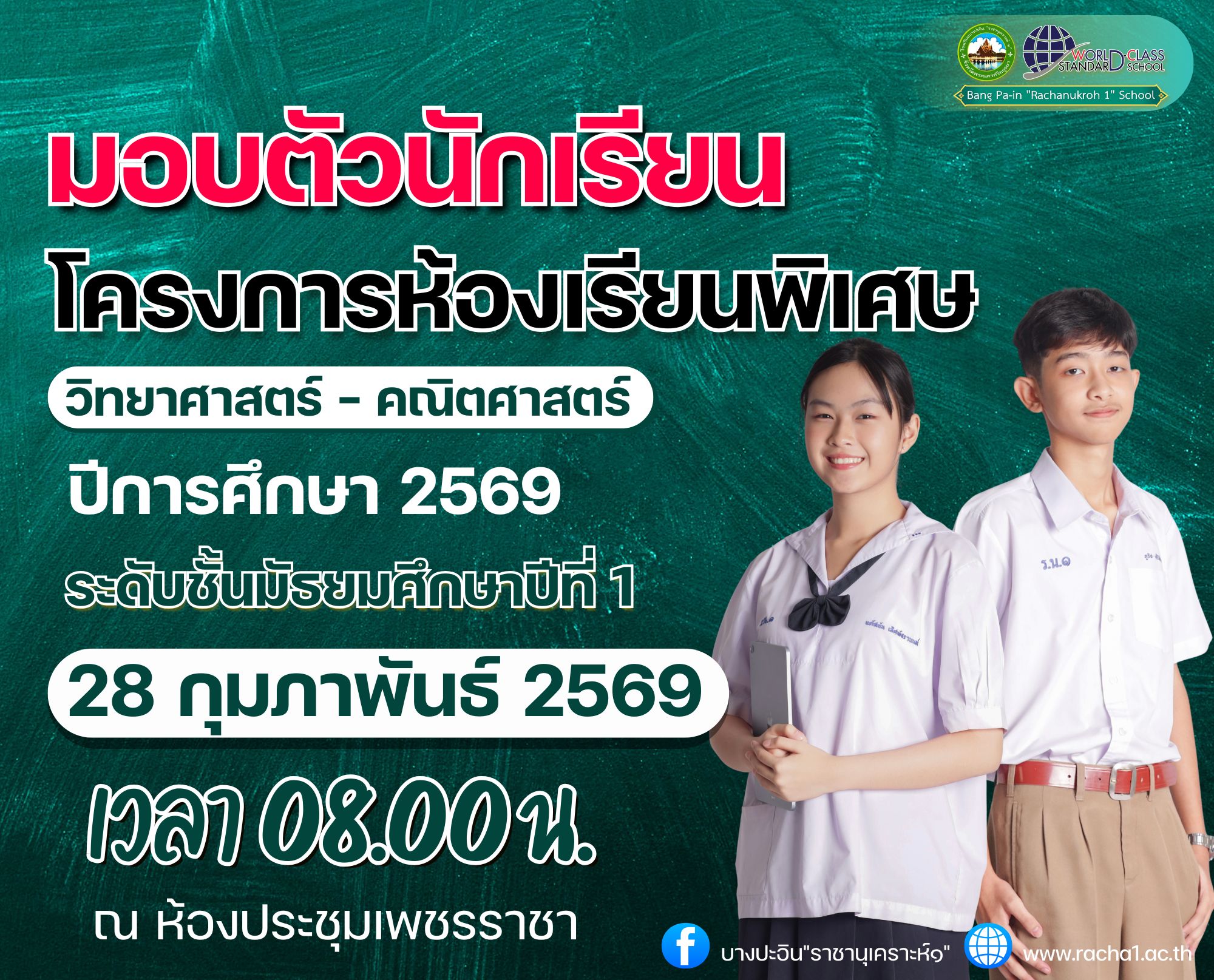 โรงเรียนบางปะอิน “ราชานุเคราะห์ ๑” มีนักเรียนชั้นมัธยมศึกษาป...