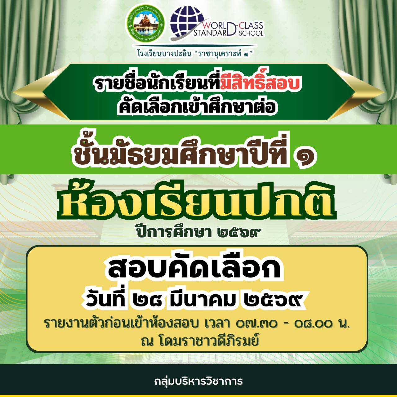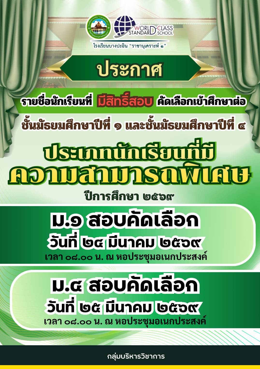 สอบนักเรียนห้องเรียนพิเศษ ม.1