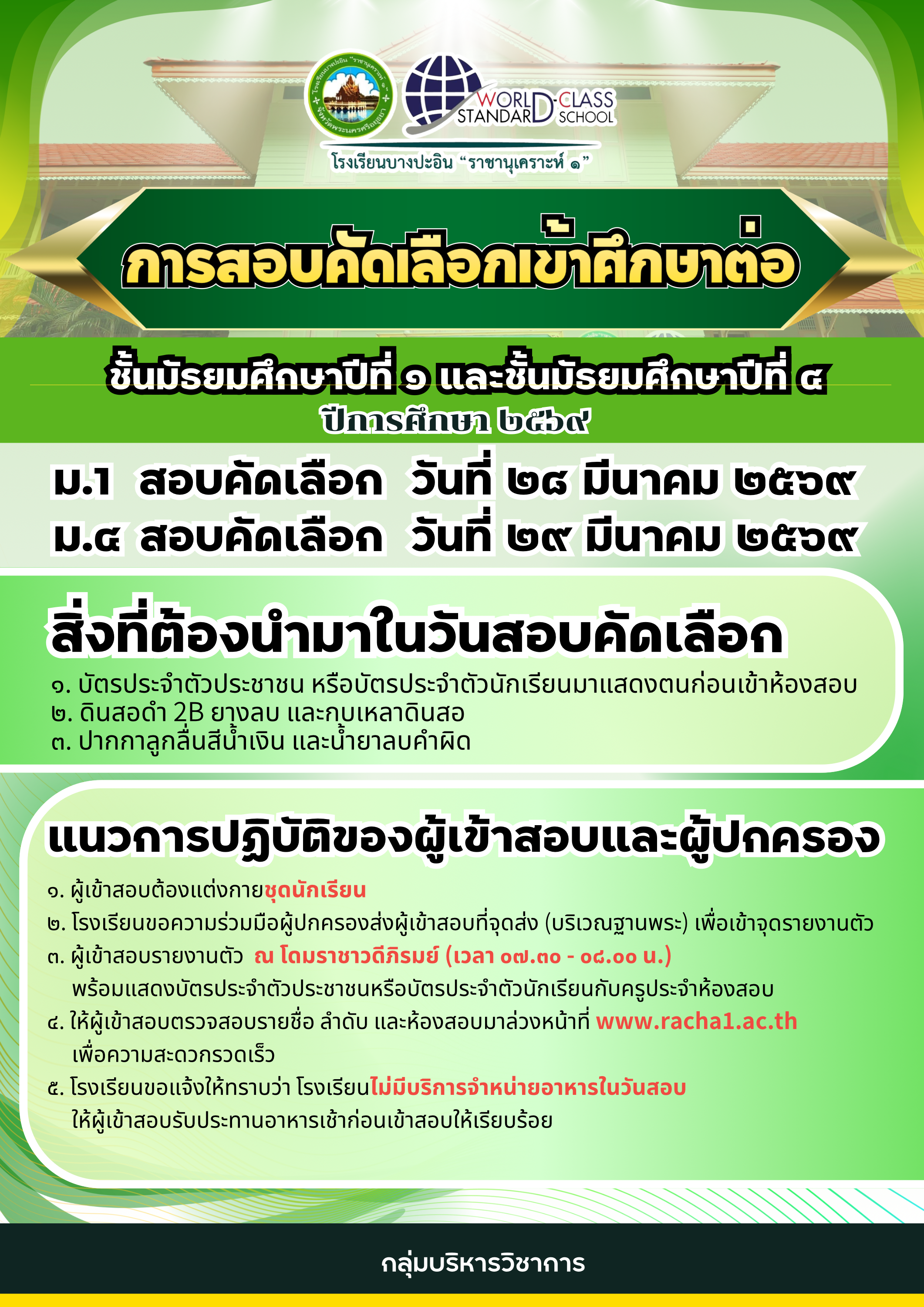 103/2569 แต่งตั้งคณะกรรมการดำเนินการรับและคัดเลือกนักเรียนเข้าศึกษาต่อชั้น ม.๑ และ ม.๔ ปีการศึกษา ๒๕๖๙