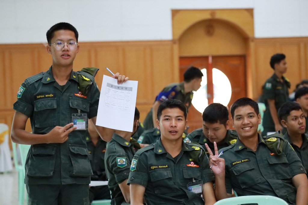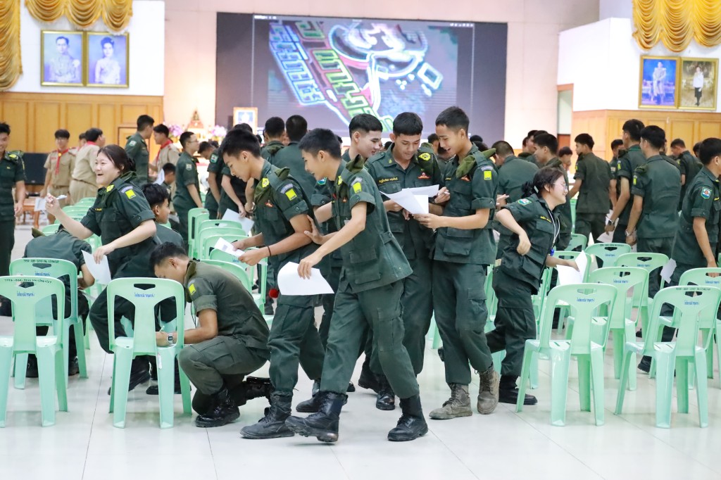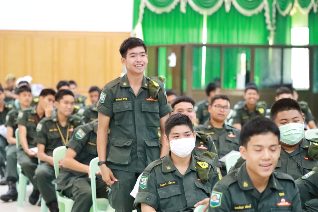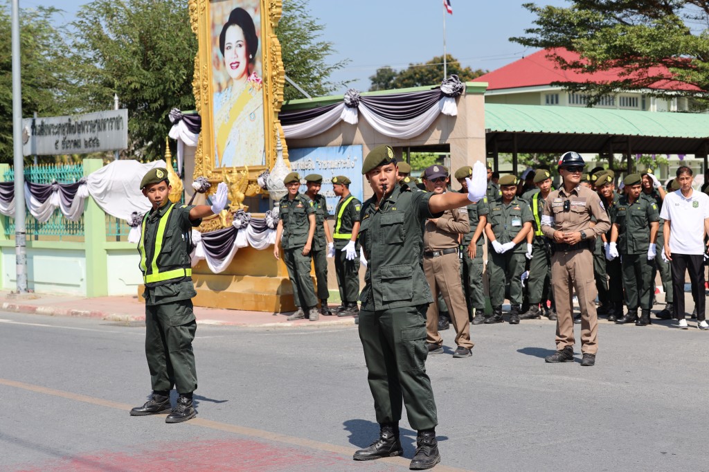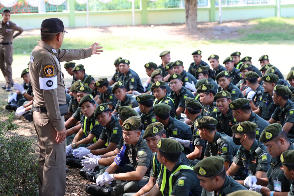 อบรมด้านระเบียบวินัยจราจรให้แก่กลุ่มนักเรียนวิชาทหารและลูกเสืออาสาจราจรจิตอาสา