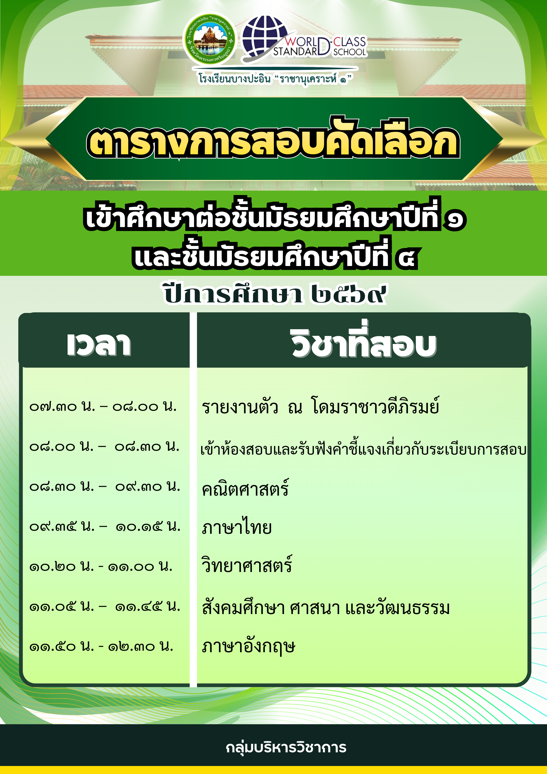 สอบนักเรียนห้องเรียนพิเศษ ม.1