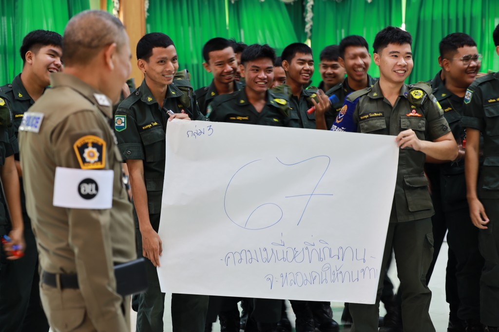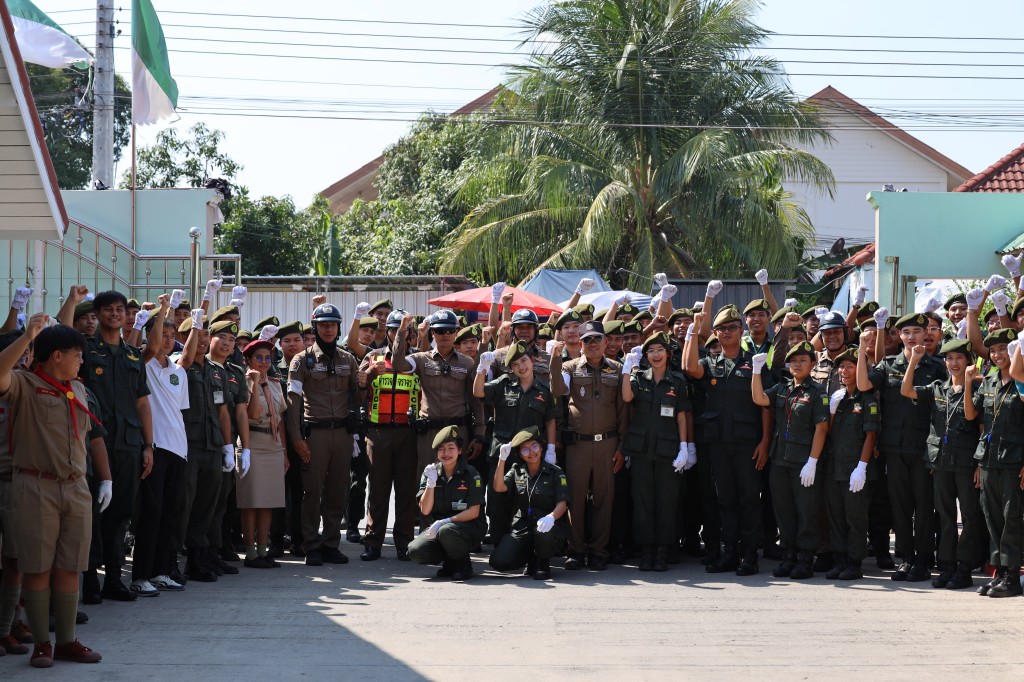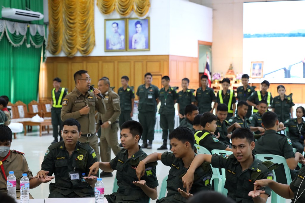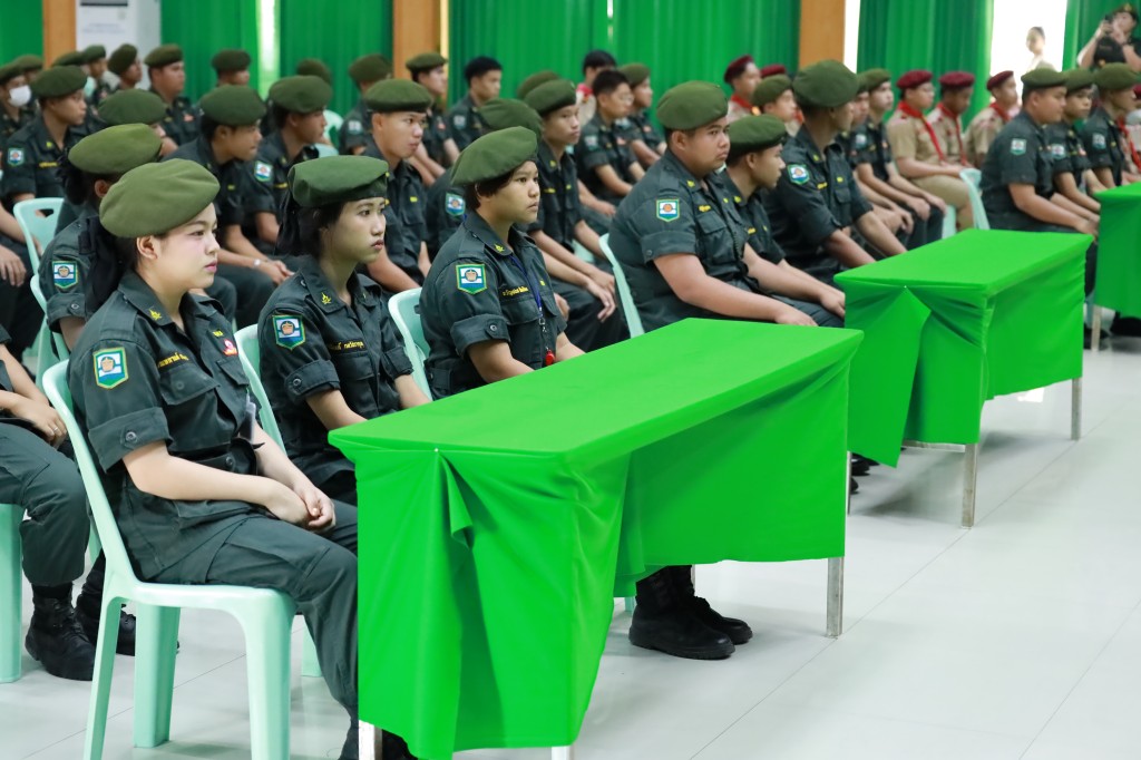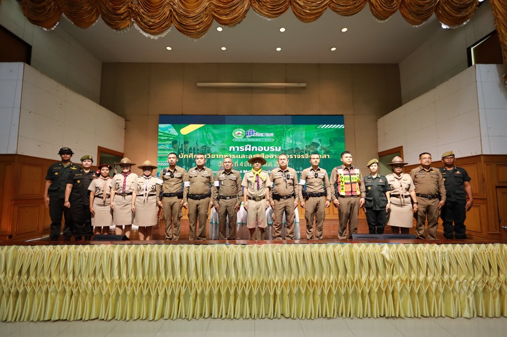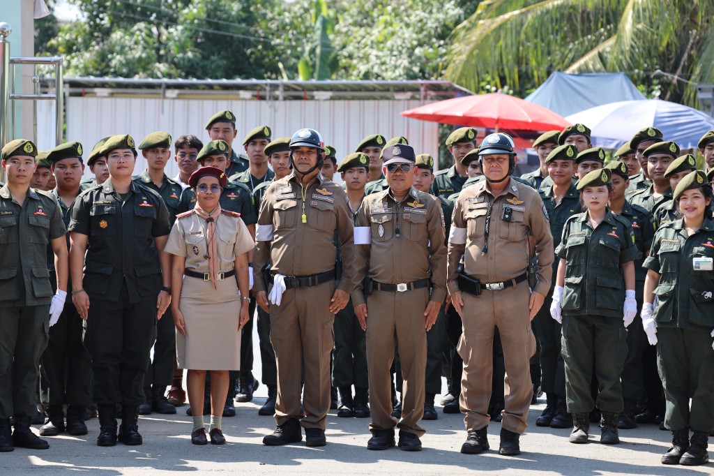 อบรมด้านระเบียบวินัยจราจรให้แก่กลุ่มนักเรียนวิชาทหารและลูกเสืออาสาจราจรจิตอาสา